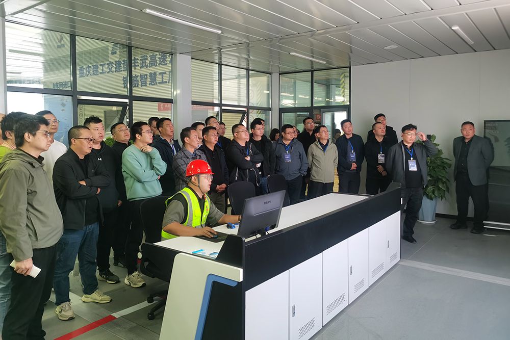 14日,考察组前往中交路桥建设有限公司清花高速公路TJ2合同段项目,深入智慧梁厂生产一线,全景探访智能制梁全流程。由一键式液压模板、智能布料系统、智能蒸养系统、智能张拉压浆系统等组成的智能生产线,在减少设备投入的同时大幅缩短单片制梁周期。智慧调度中心的数字孪生系统1:1还原厂区布局,借助AI视觉识别、智能传感器等技术,实现全工序数据自动采集、质量问题自动预警、安全风险智能识别,构建形成“数据采集-分析-预警-整改-闭环”的智能管理模式。项目“三位一体”建设方案(产线数智规划、智慧管理平台、数智中心)及全流程质量管理、全厂区安全监测等功能,给考察组留下深刻印象。